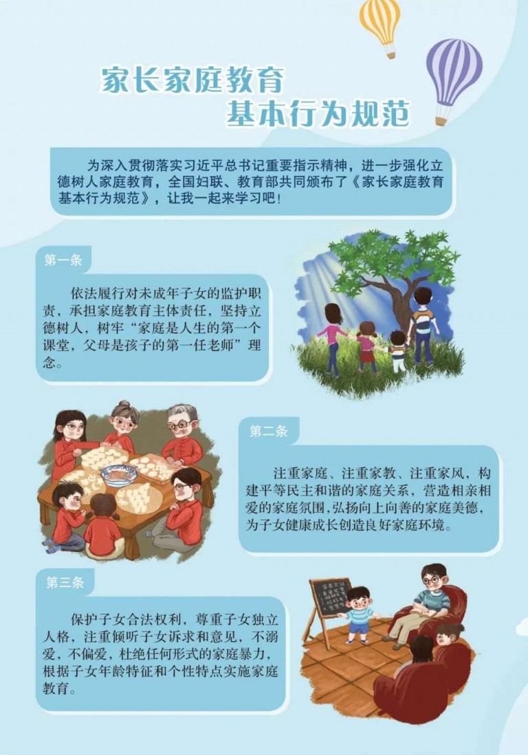 近日,全国妇联、教育部下发《关于印发〈家长家庭教育基本行为规范〉的通知》,对 2004 年制定的 《家长教育行为规范》 进行了修订完善。正值开学季,家长朋友们,一起来对照学习吧!祝各位家长和孩子新学期快乐!