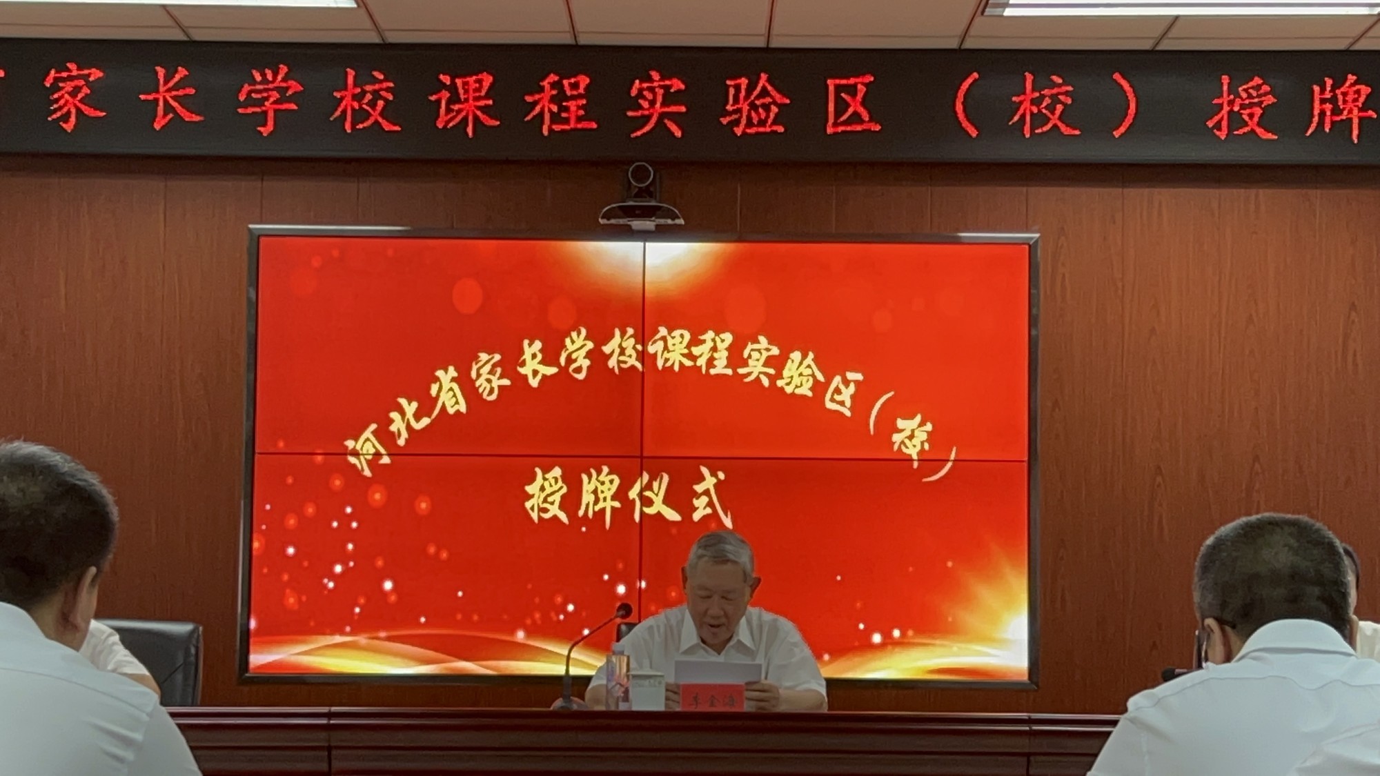 授牌仪式由市委教育工委书记、市教育局党组书记、局长魏红军主持,省家长学校相关负责人,各中心校、市直校、家长学校课程实验校校长,定州市家庭教育讲师团成员,共110余人参加了授牌仪式。