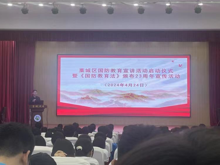 国无防不立,民无兵不安。为落实立德树人根本任务,加强学生思想政治建设,弘扬爱国主义精神,培养国防意识,厚植家国情怀,4月24日,藁城区第九中学开展了以“国防教育进校园,同心共筑家国梦”为主题的国家安全教育会议。藁城区人武部部长赵德军、区委宣传部张英杰主任和九中德育副校长吴松敏等学校领导及高二年级学生参加了会议,会议由政教处主任王红亮主持。